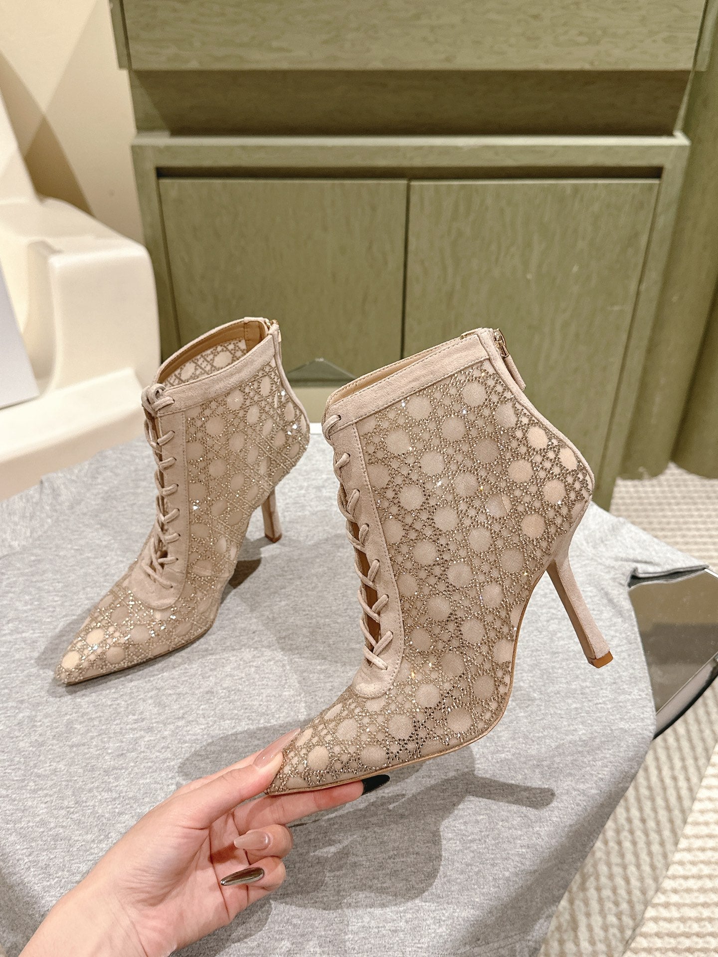 CD Capture Ankle Boot 85mm Beige Mesh & Suede 483090