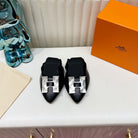 H-BUCKLE BALLLET FLAT BLACK CALFSKIN
