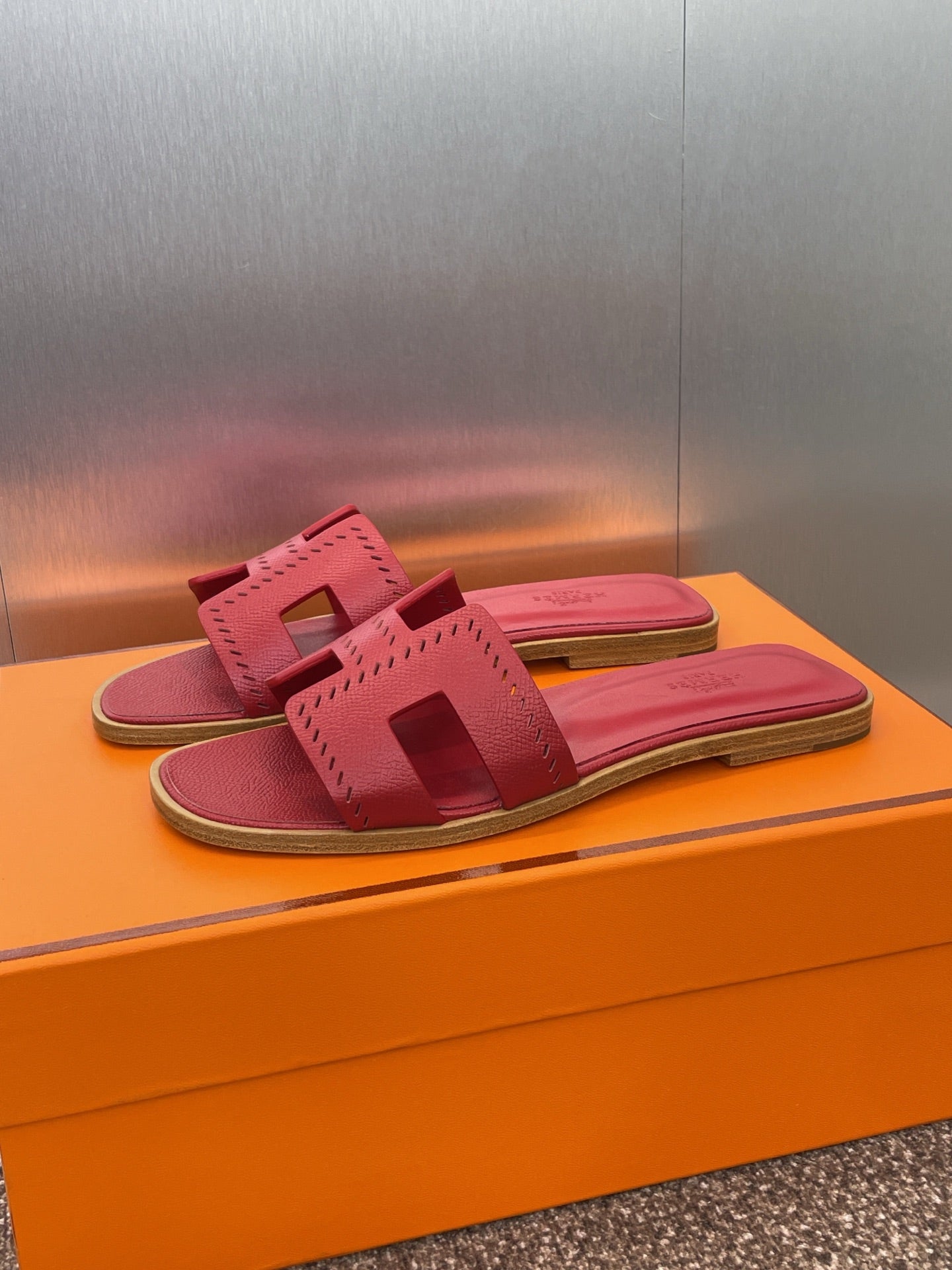 HM 25 Oran Sandal Dark Red Perforate Epsom Leather