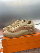 HM Bouncing Sneakers Caramel Brown Canvas & Suede Light Beige H Brown