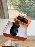 HM Chypre Sandal Black Ostrich Leather 202800