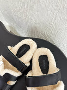 HM Chypre Sandal In Black White Lambskin And Fleece Lining 961138