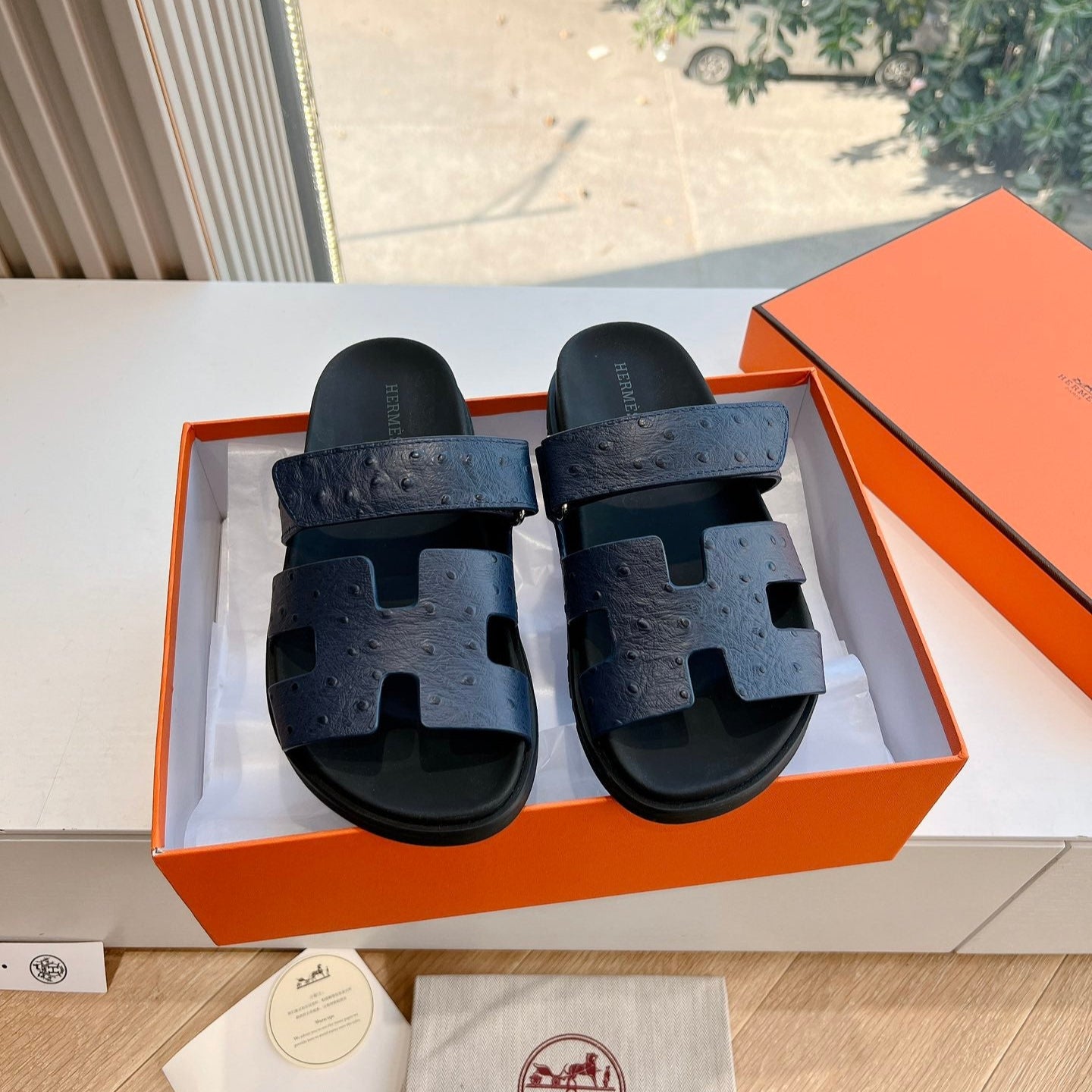 HM Chypre Sandal Liberty Blue Ostrich Leather 202804
