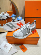 HM Depart slip-on Sneaker White mix gray Knitted fabric and Calfskin 206323