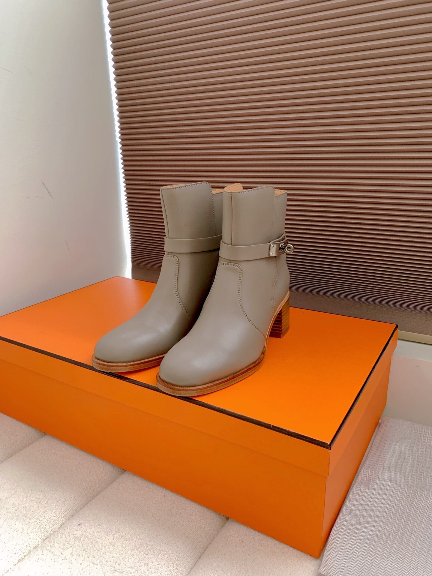 HM Frenchie 50 Ankle Boot Taupe Gray Cowhide 464341