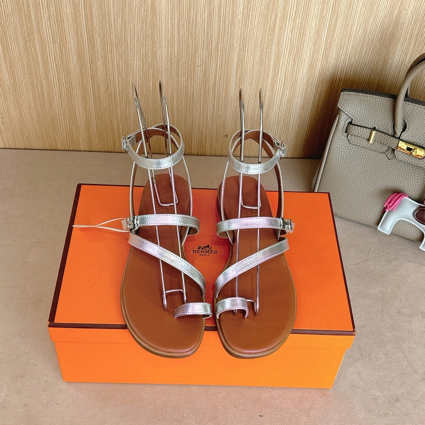 HM Harmonie Sandal In Gold Calfskin And Silver Metallic Finish