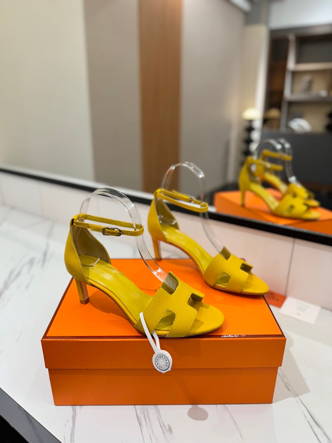 HM Joy 65mm Heeled Sandals Yellow Cowhide 294906