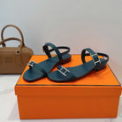 HM Paris Sandals Navy Blue Lamskin 374211