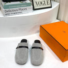 IENA MULE GRAY CANVAS AND BLACK CALFSKIN