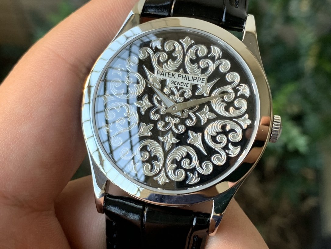 PATEK CALATRAVA 38 PLATINUM HAND-ENGRAVED BLACK DIAL