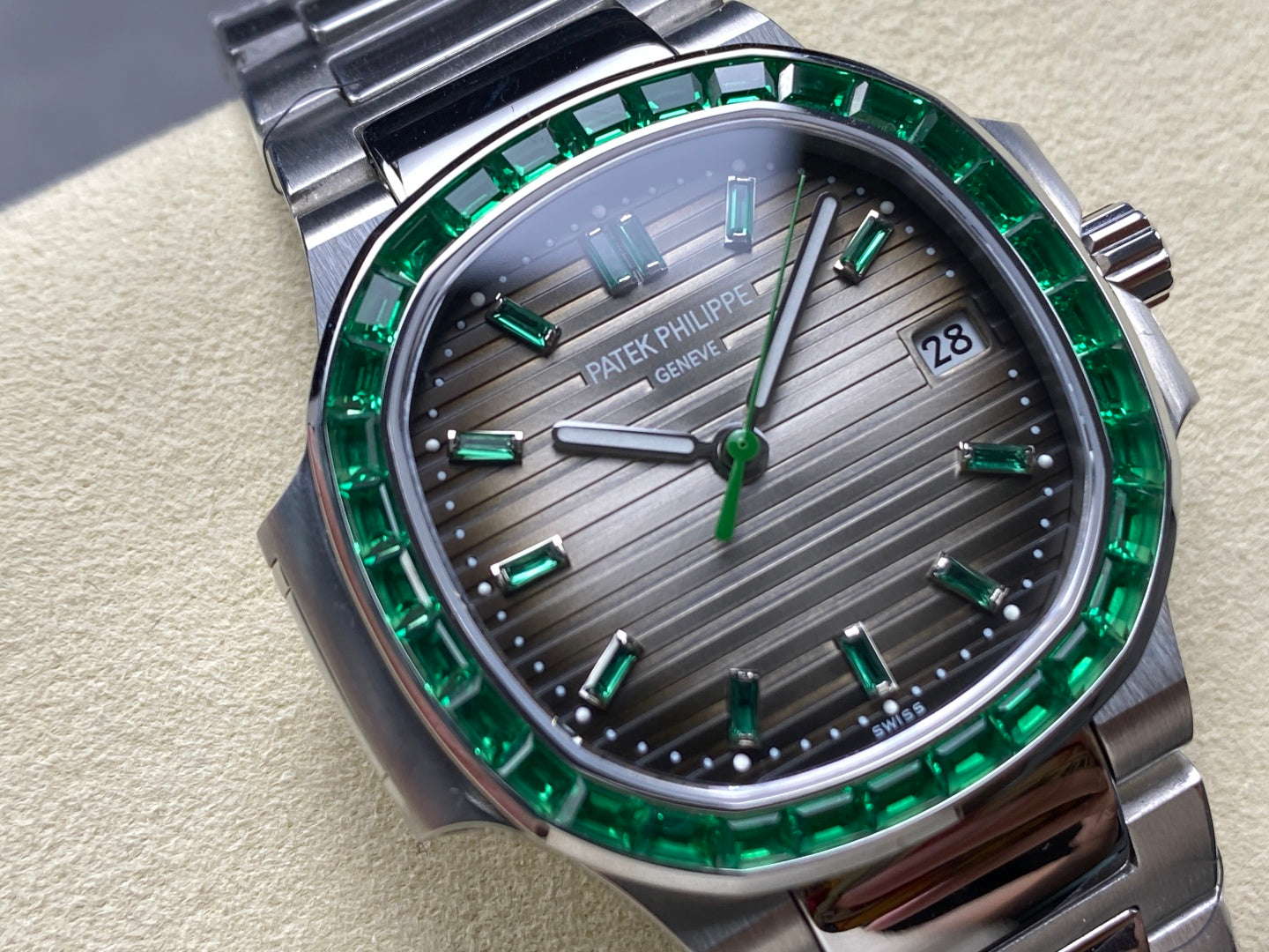 PATEK Nautilus 35.2mm Silver Green Black Dial