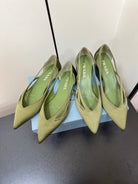 CUT-OUT BALLERINAS IN OLIVE GREEN SATIN