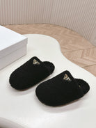 MULES ATTACHED TRIANGLE LOGO IN BLACK SHEARLING
