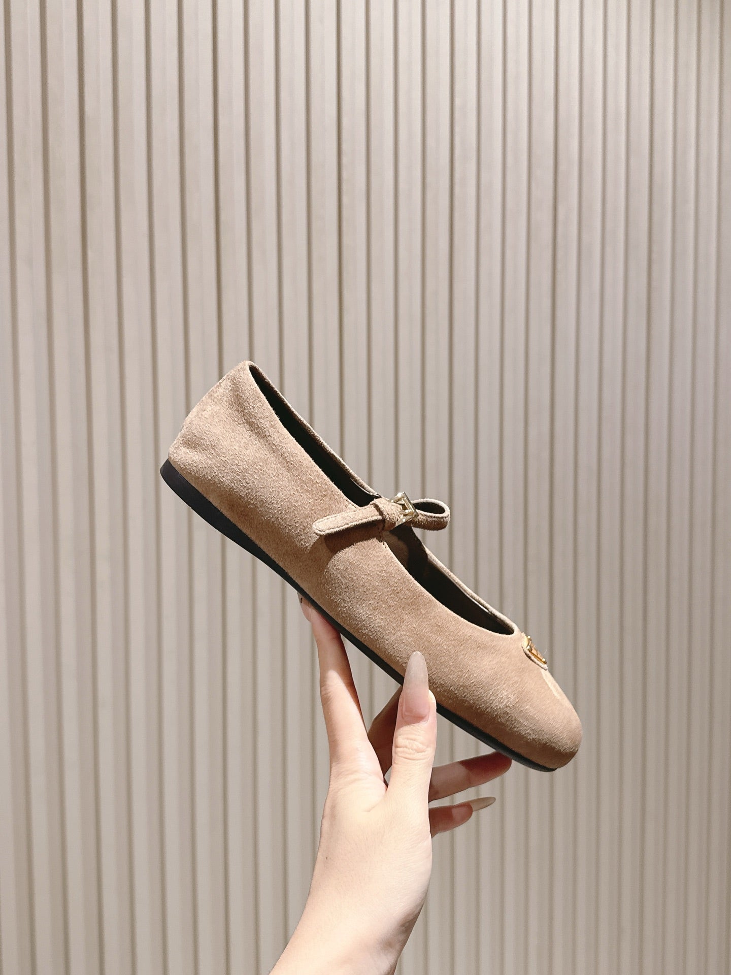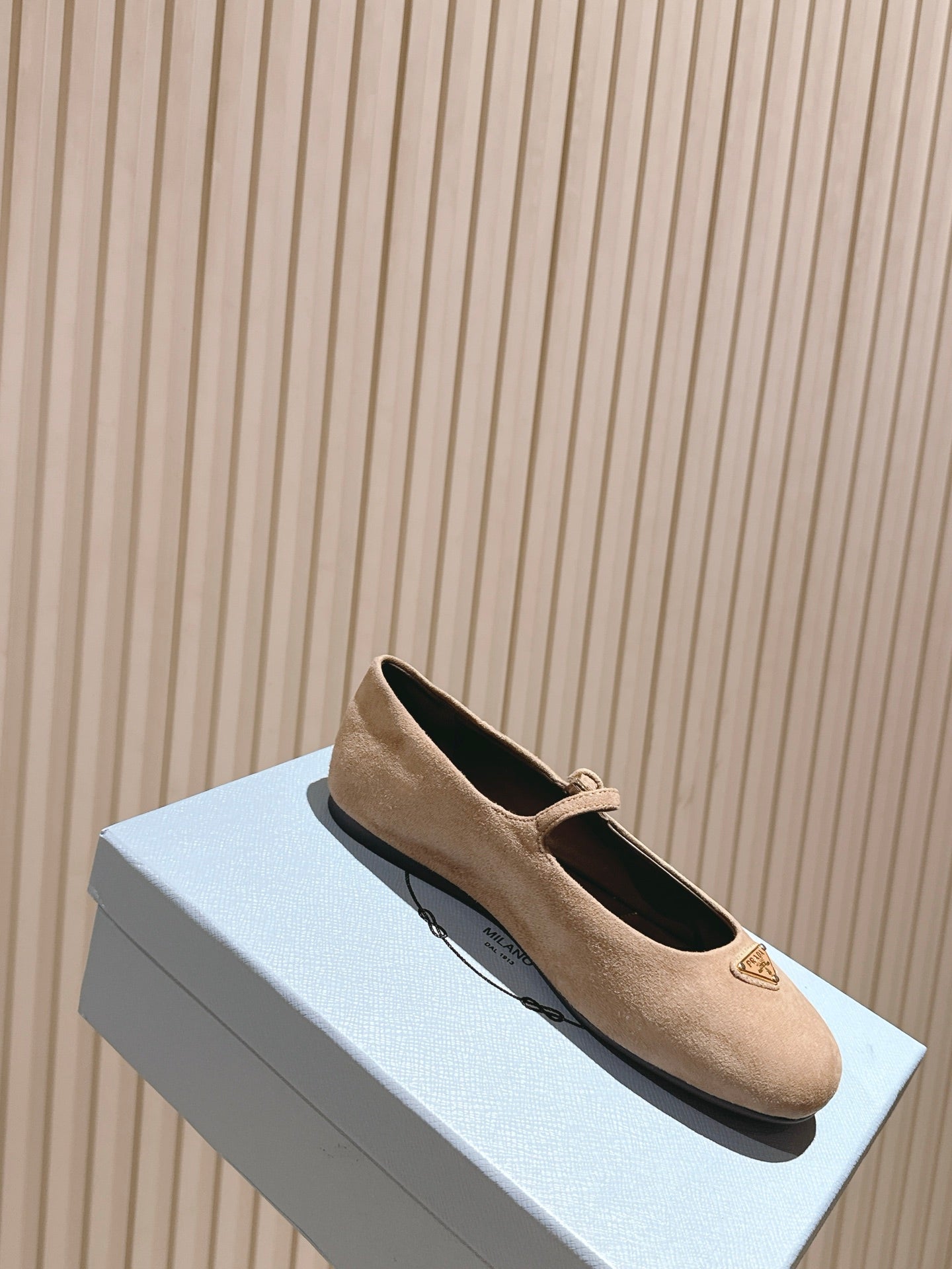 PRA 25s Ballet Flats with Small Buckle Light Brown Suede 449707