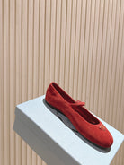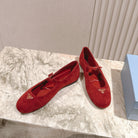PRA 25s Ballet Flats with Small Buckle Red Suede 449709