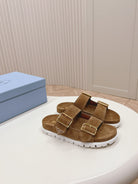 Double Buckle Strap Slides 20 Brown Suede