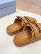 Pra Double Strap Slide 20 With Triangle Logo Tan Calfskin