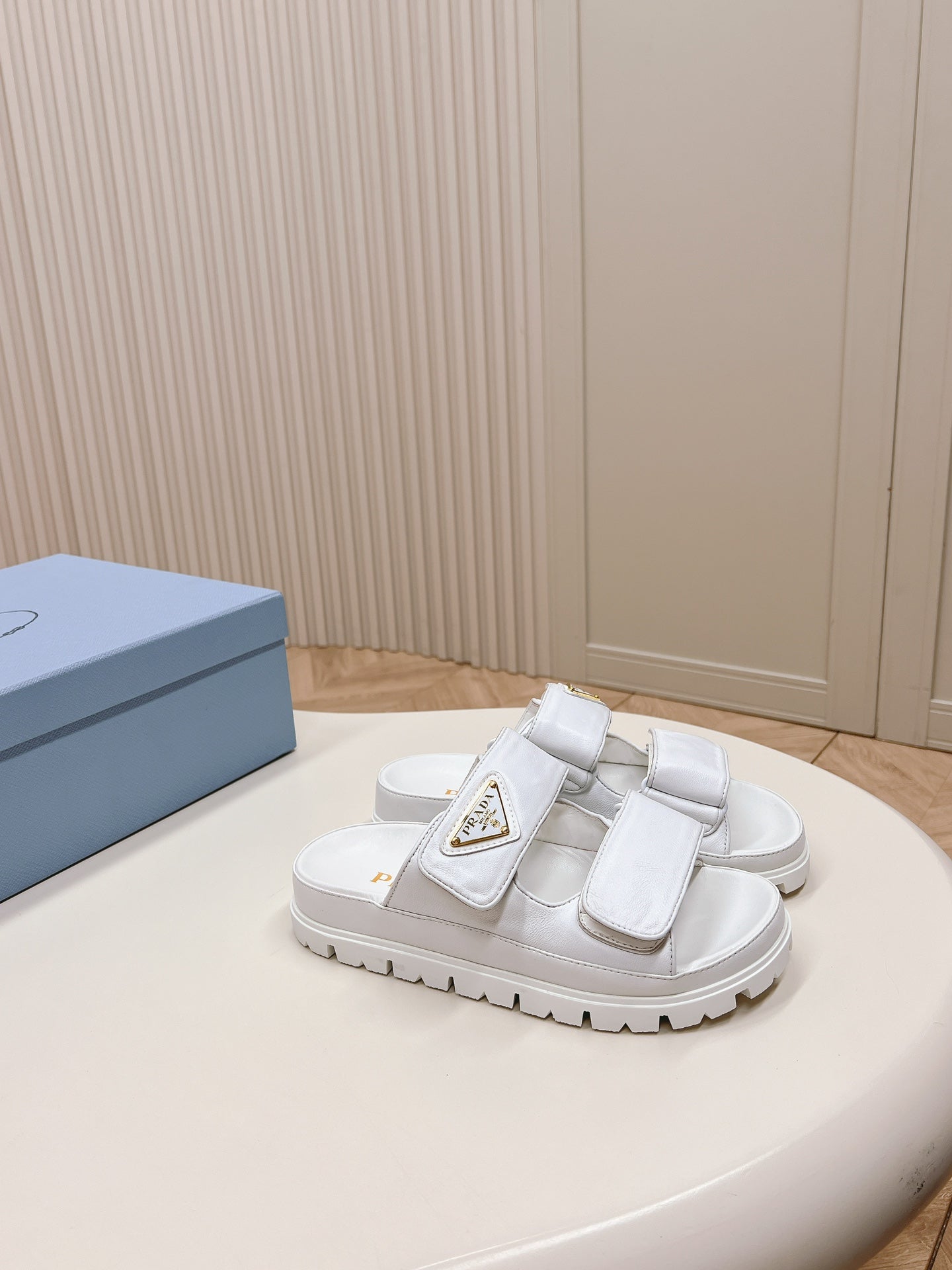 Pra Double Strap Slide 20 With Triangle Logo White Calfskin