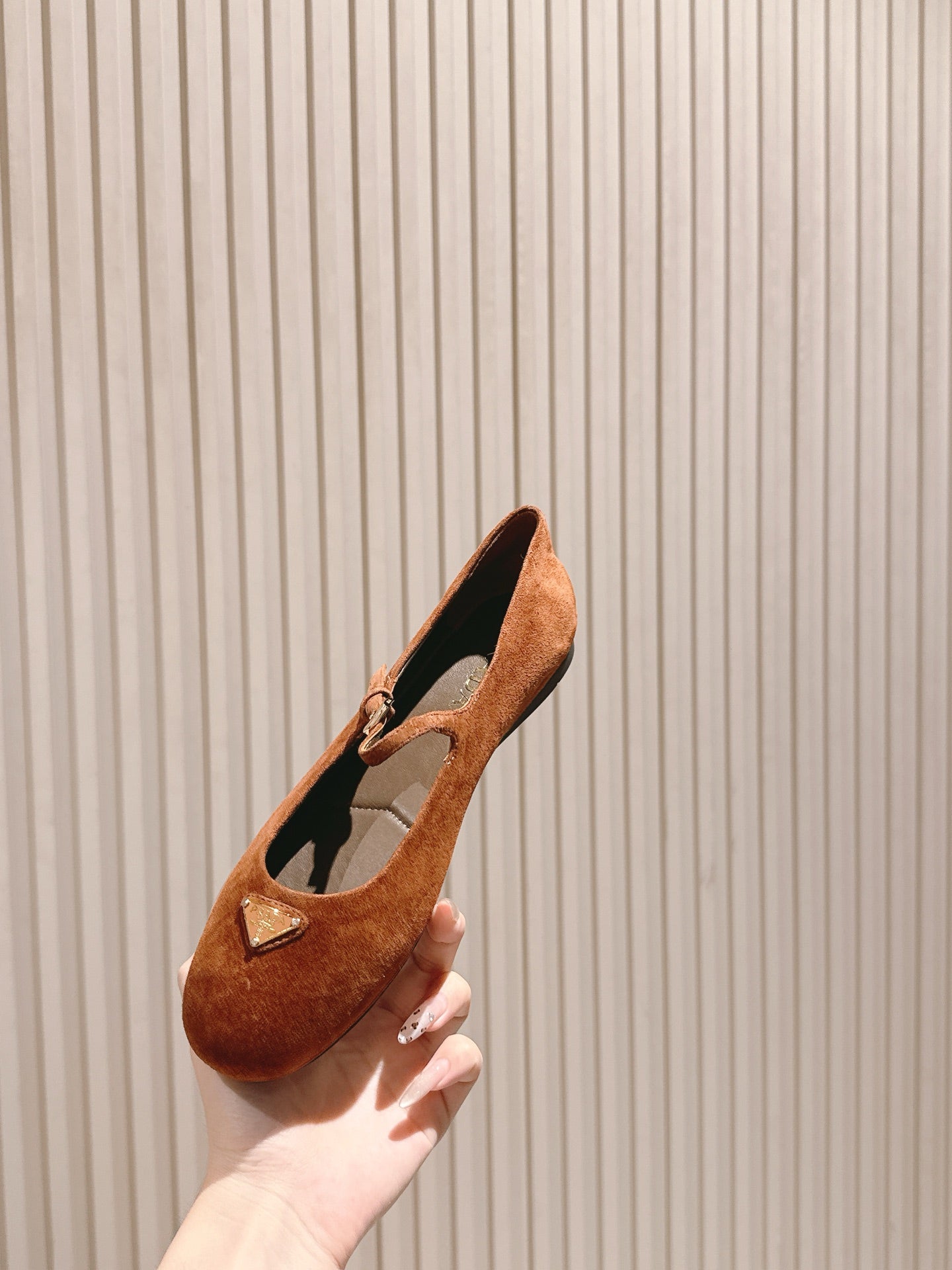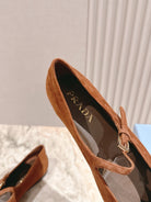 PRA 25s Ballet Flats with Small Buckle Chocolate Suede 449708