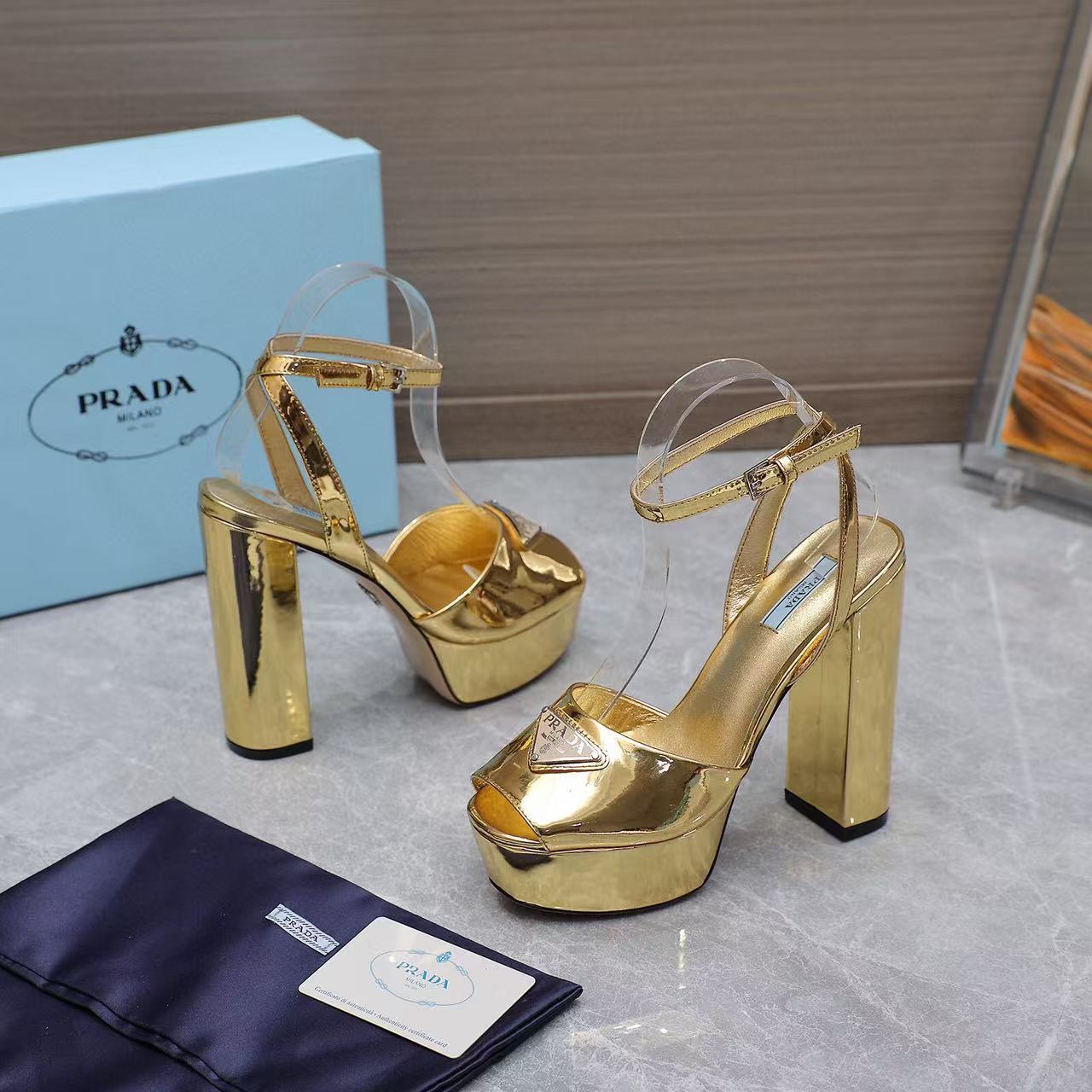 PRA Heel Platform Sandals 115mm Gold Sheepskin