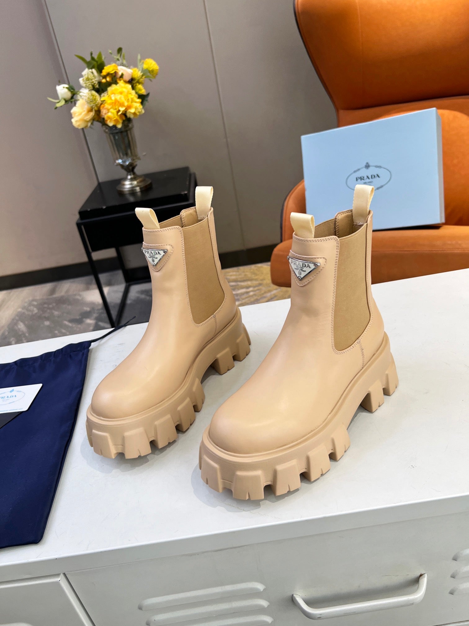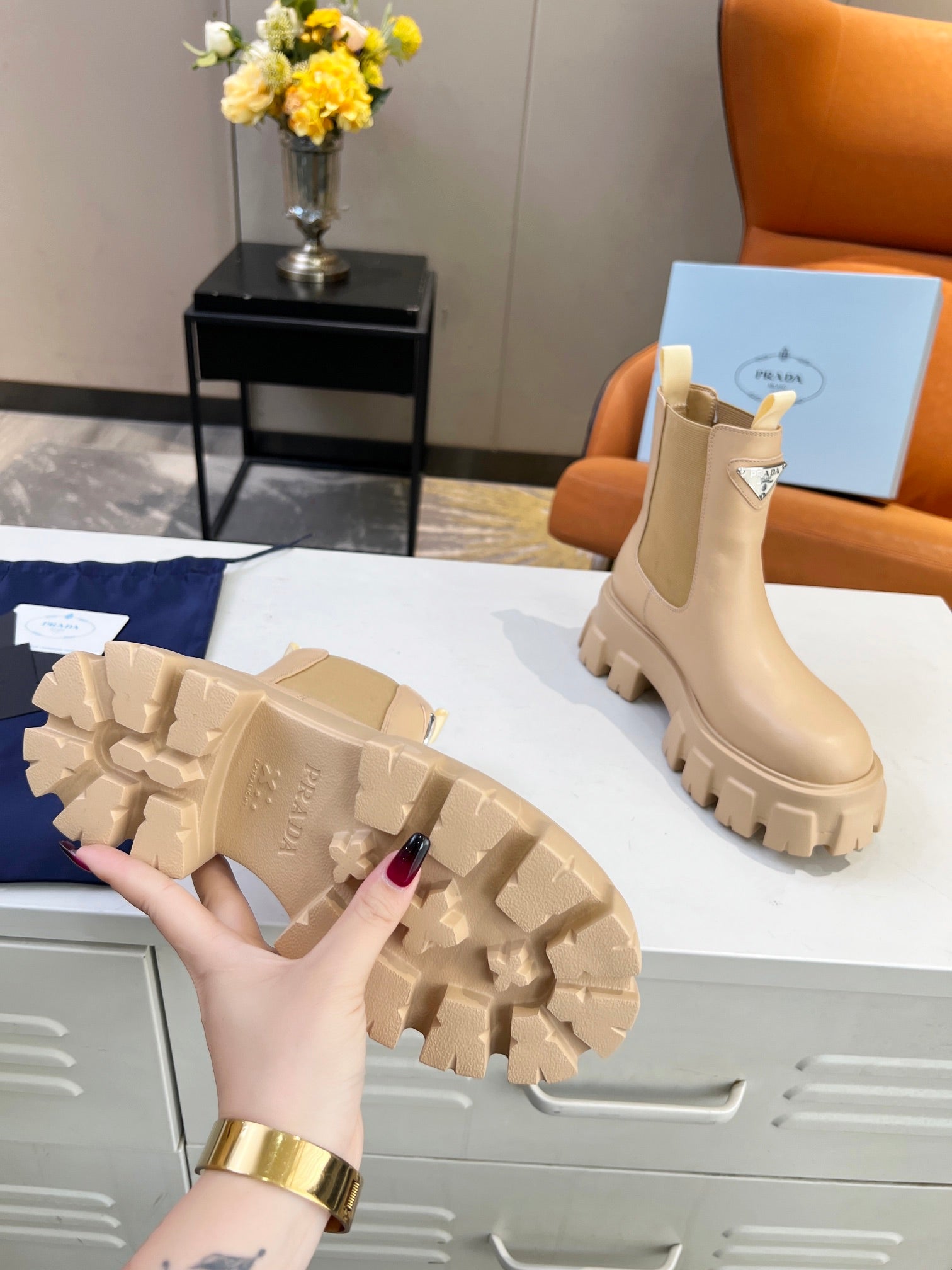 PRA MONOLITH BRUSHED BOOTIES 55 TUSCAN CALFSKIN