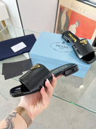 PRA SAFFIANO PATENT SLIDES BLACK CALFSKIN
