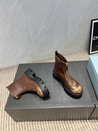 Prada 25 Martin Boots Brown Black Cowhide 501672