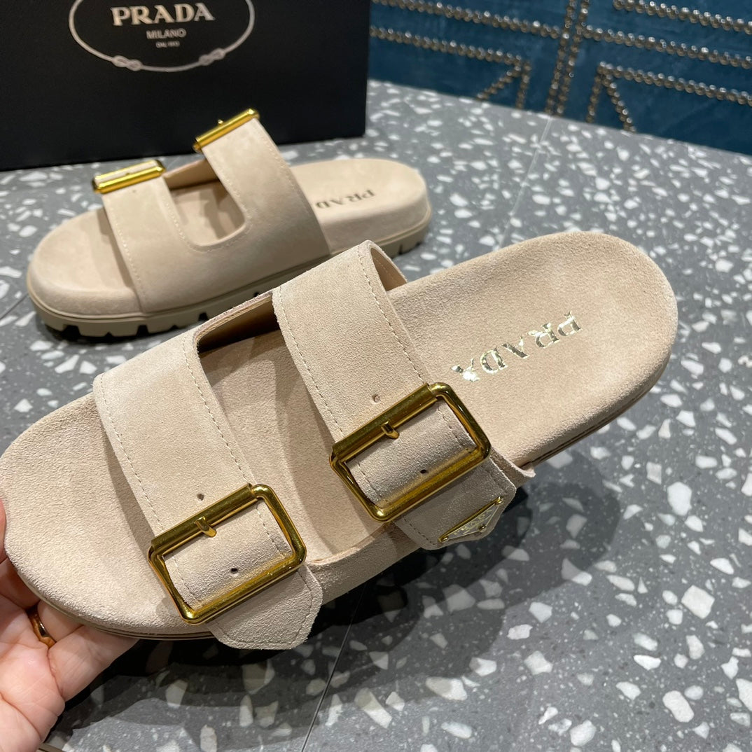 PRA STRAP SLIDES SANDALS BEIGE SUEDE