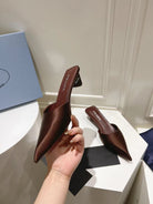 PRA POINTED-TOE MULES CHOCOLATE SATIN