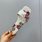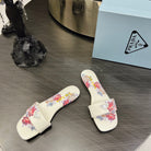 PRA PRINTED SLIDES SLIPPERS WHITE SATIN