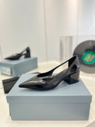PRA STRAP CUT-OUT PUMPS BLACK CALFSKIN