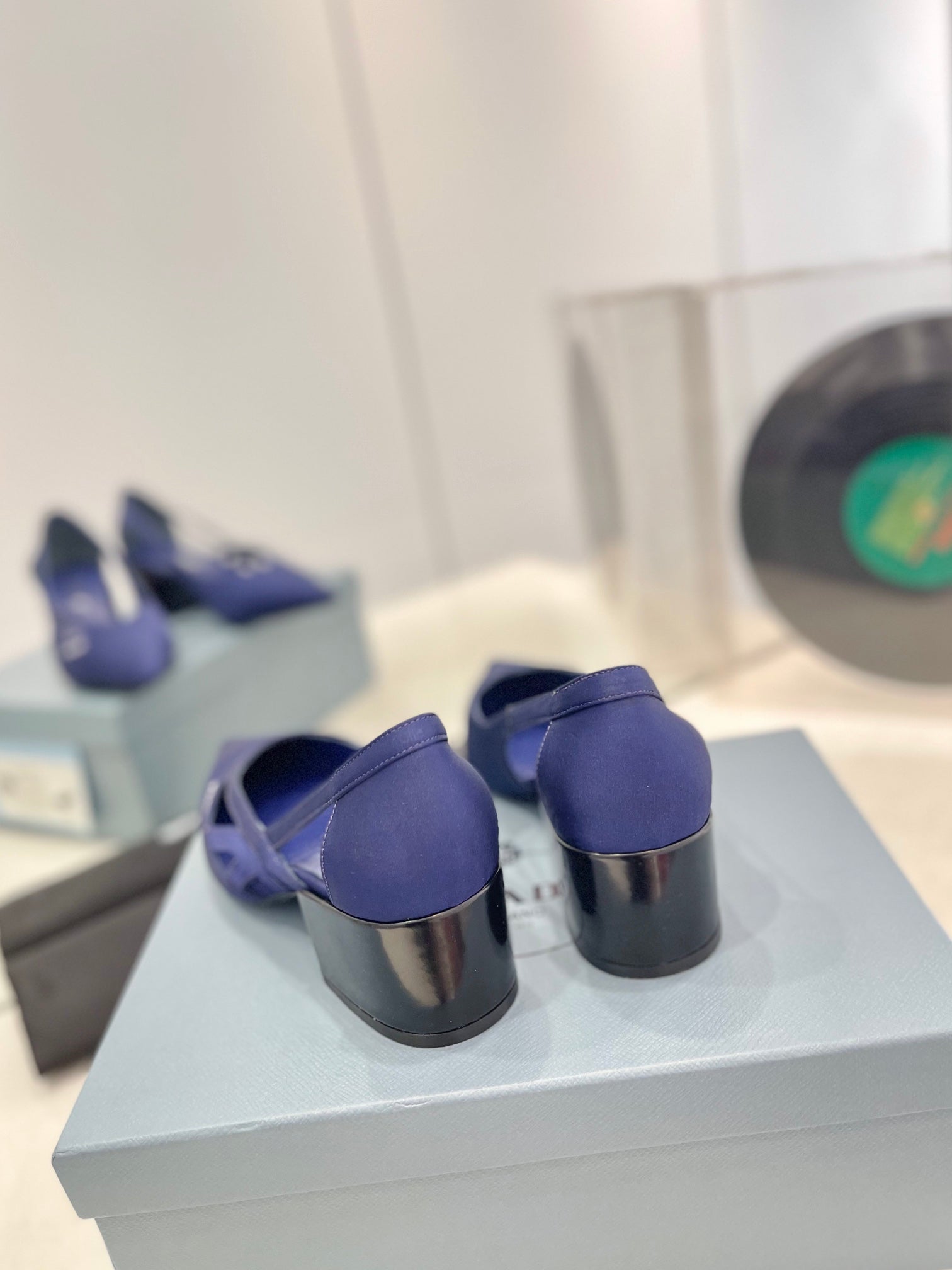 PRA STRAP CUT-OUT PUMPS NAVY SATIN