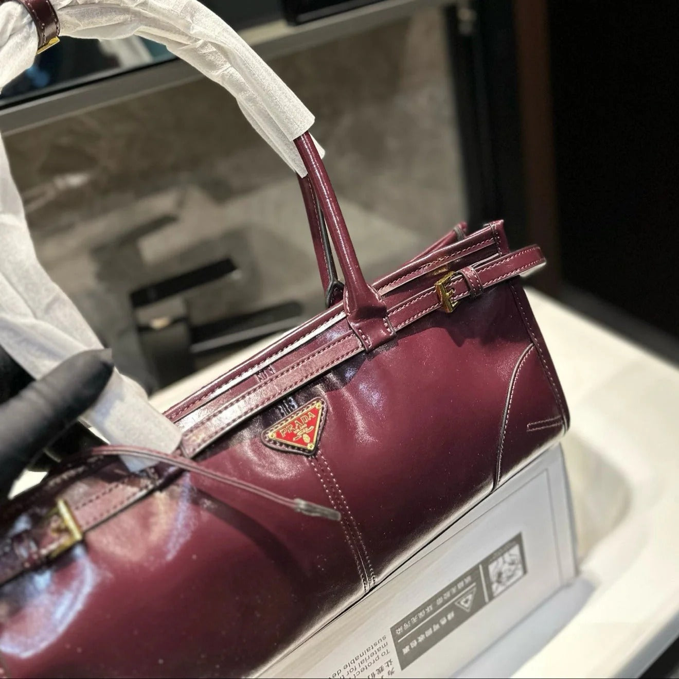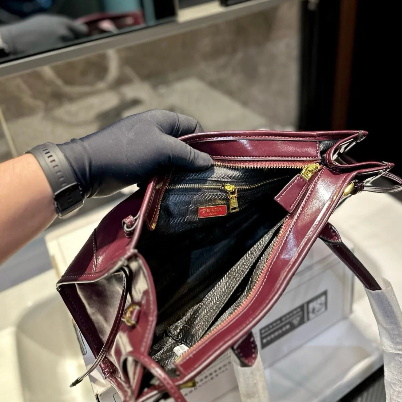 BONNIE SOFT LUX HANDBAG 32 IN BURGUNDY RED PATENT CALFSKIN