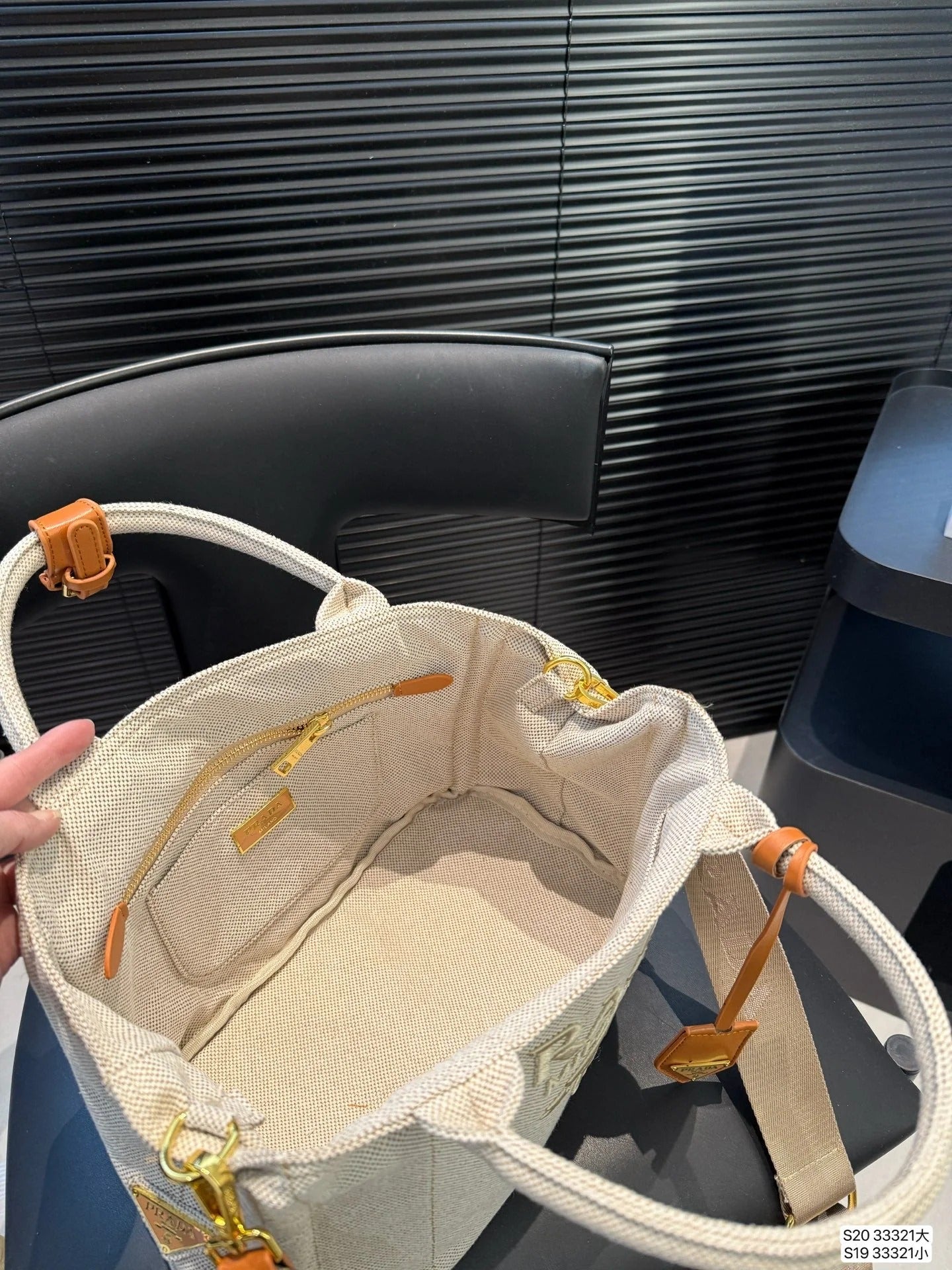 LARGE HANDBAG 30 IN BEIGE MIX BROWN LINEN BLEND
