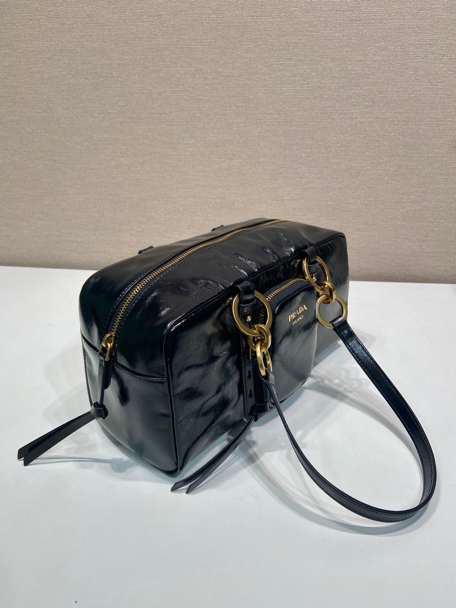 LARGE RECTANGULAR BAG 30 IN BLACK OIL WAX LAMBSKIN GOLD HARDWARE