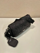 MEDIUM FLAP BAG 24 IN BLACK TRIANGULAR QUILTED PATTERN RE-NYLON