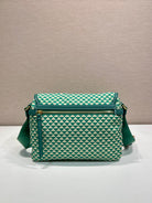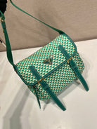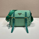 MESSENGER BAG 25 IN FOREST GREEN MIX CREAM TRIANGLE PATTERN EMBROIDERED FABRIC
