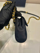 MINI QUILTED FLAP BAG 14 IN BLACK RE-NYLON FABRIC GOLD CHAIN