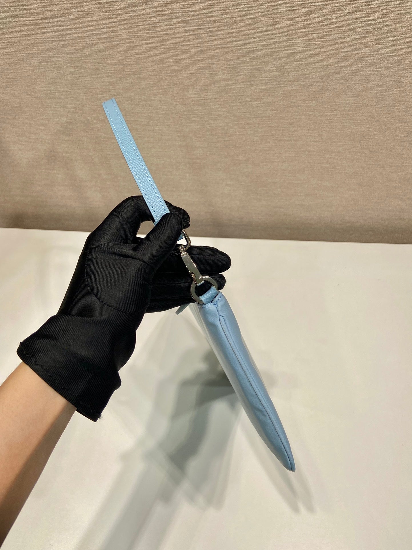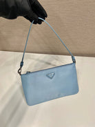 SHOULDER BAG 24 WITH TRIANGLE LOGO IN SKY BLUE RE-NYLON FABRIC