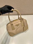 SMALL TOP HANDLE BAG 25 IN DRIED MOSS NYLON AND CALFSKIN TRIM