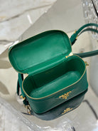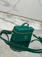 VANITY CASE 18 IN EMERALD GREEN GRAINED CALFSKIN GOLD HARDWARE