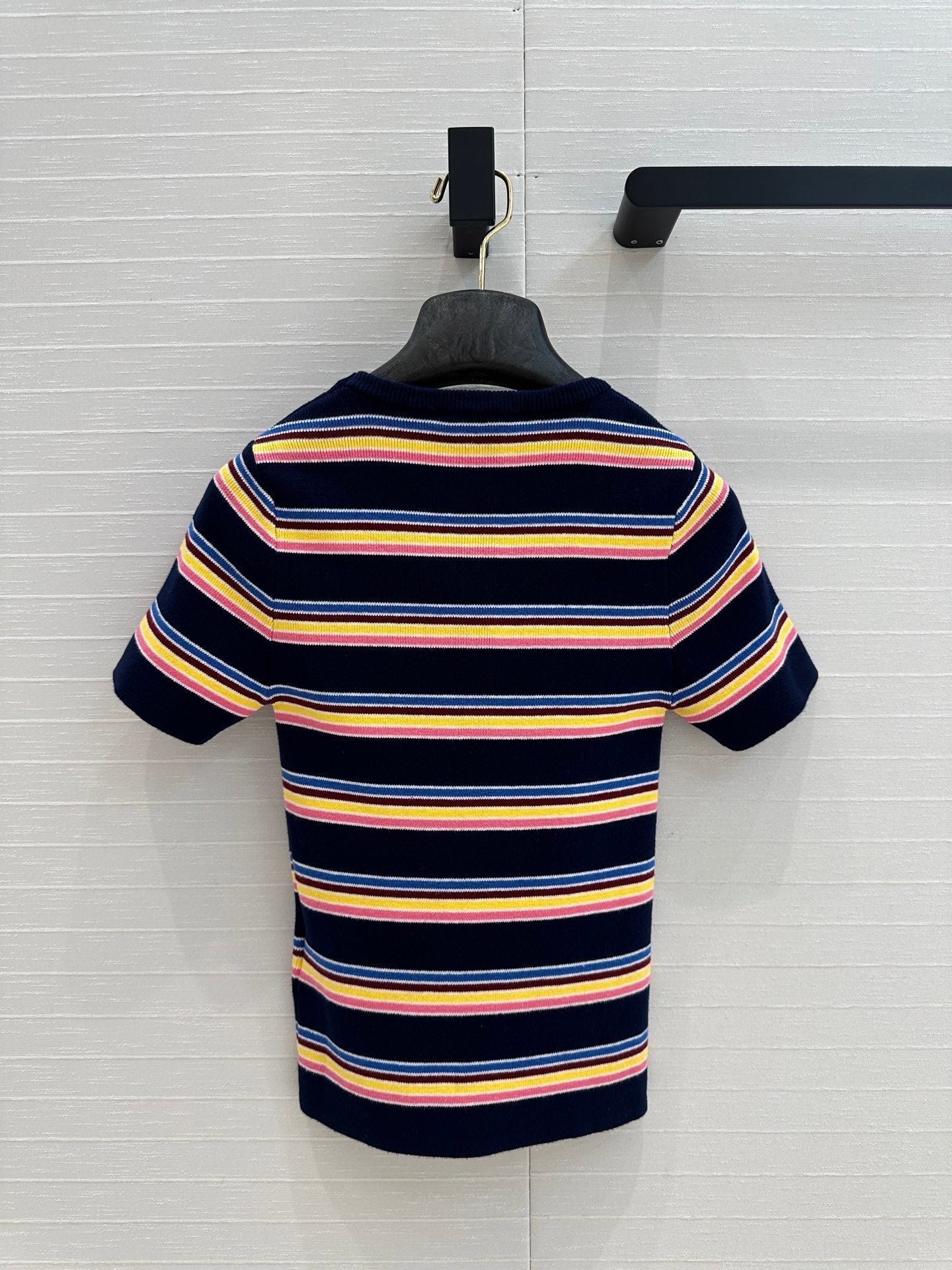Prada 2025 Striped T-shirt Navy Blue mix colors Cotton