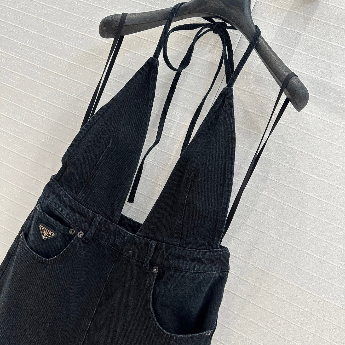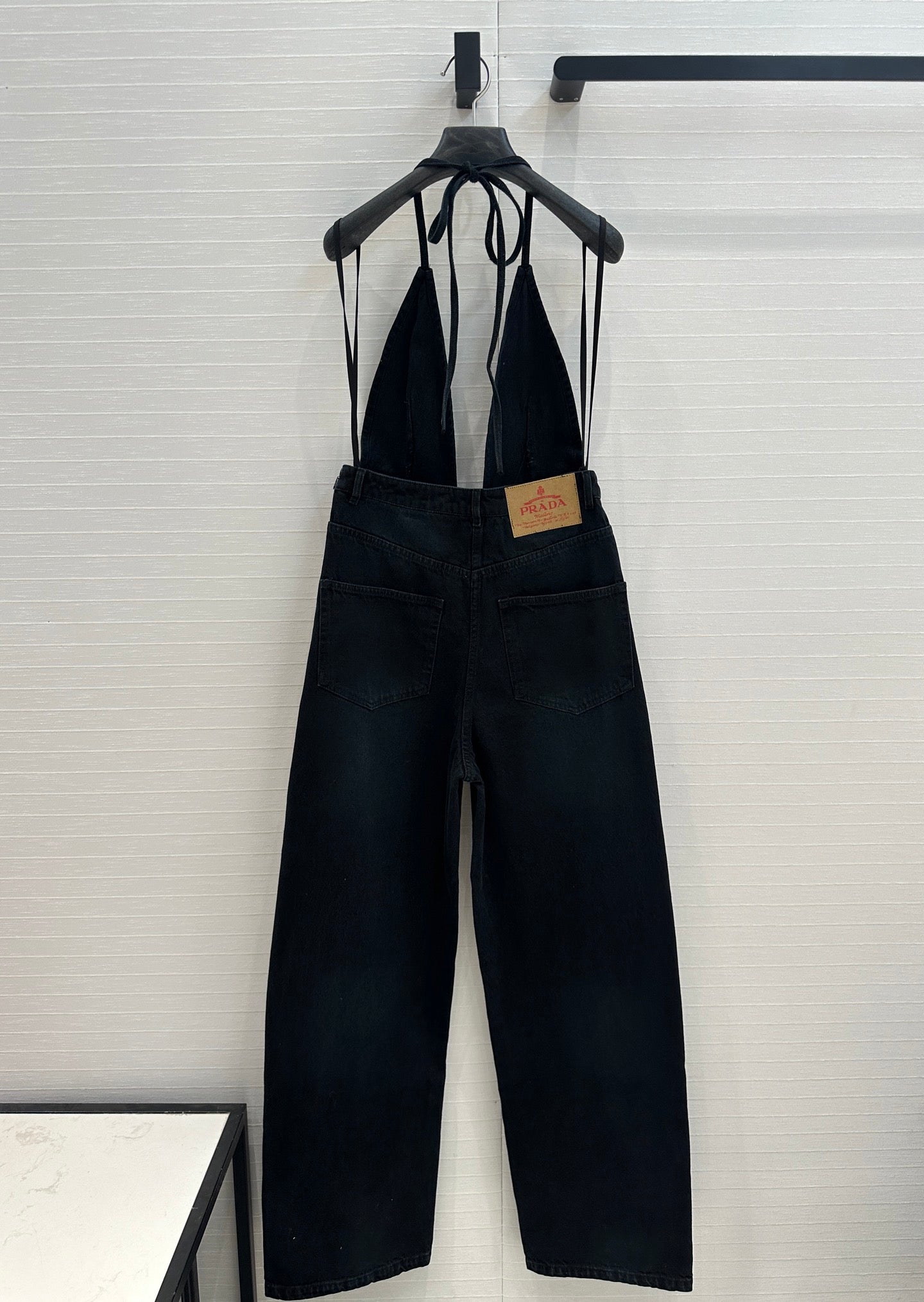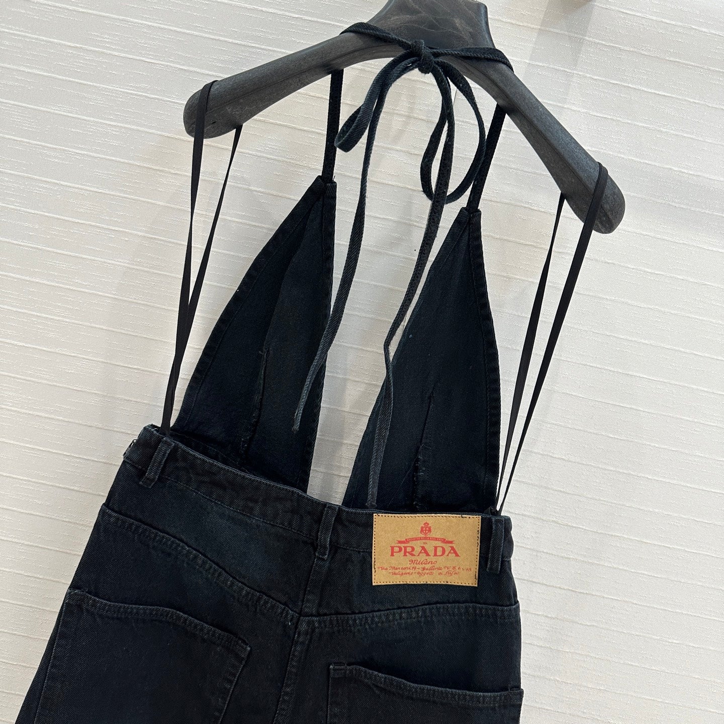 Prada 25 Halter Ntube Top Suspender Jumpsuit Black Cotton