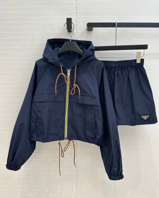 Prada 25 Hooded Jacket and Short Set Navy Blue Polyester