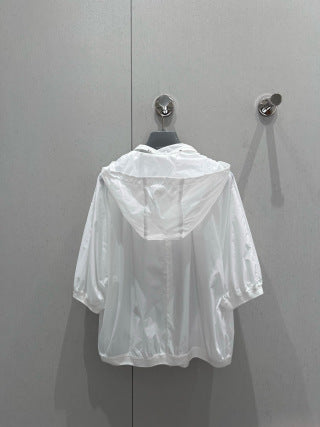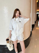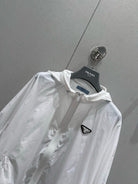 Prada 25 Hooded Triangle Logo Jacket Shorts Suit White Polyester 217937