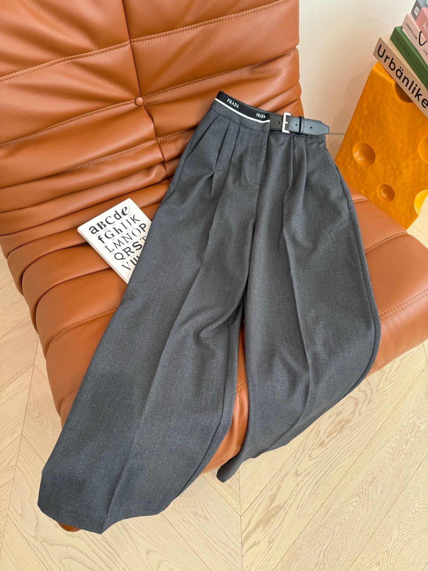 Prada 25 Leather Strap and Webbing Stitching Trousers Wool