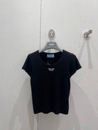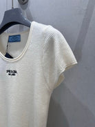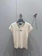 Prada 25 Letter Embroidered Knitted Short-sleeved Top Wool Acrylic Nylon 216873