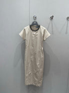 Prada 25 Short-sleeved Dress Beige Tencel Cotton 217659