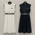 Prada 25 Sleeveless Belted Dress Cotton