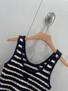 Prada 25 Striped Knitted Crop Top Navy Blue mix White Cotton 219409